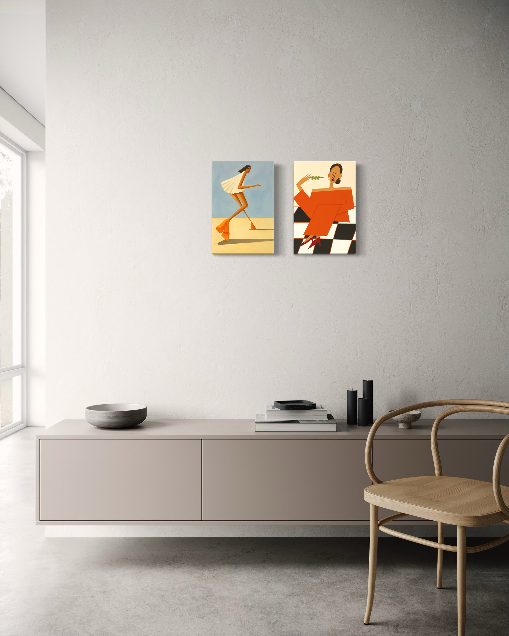Este set de cuadros une movimiento y estilo moderno. Sus figuras transmiten frescura, dinamismo y un toque contemporáneo, ideal para dar personalidad y buena energía a tu espacio.